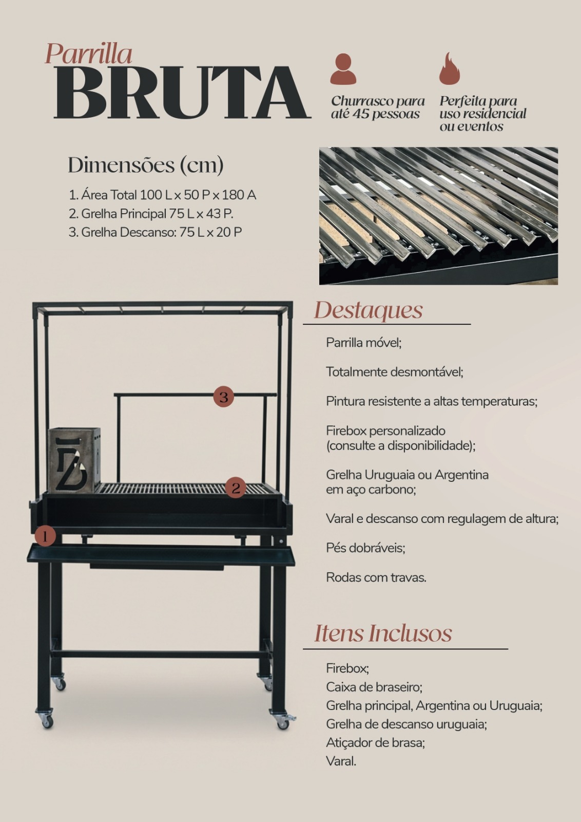 Nossa Parrilla Bruta tem capacidade para atender até 40 pessoas. Tamanho ideal para uso residencial, ou eventos médios.